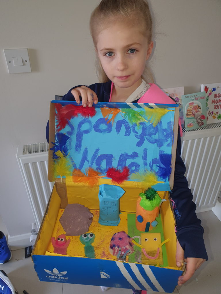 Saoirse has been keeping up with her school work, and was asked to make a Diorama at home. She got really creative with it and decided to make a Spongebob World!