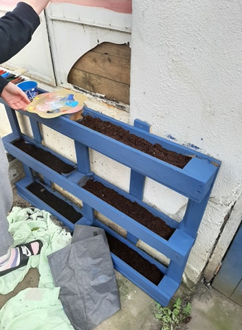 Jack has been really busy helping out in his back garden. He has done a fantastic job in turning an old pallet into a lovely new plant bed for the summer months.