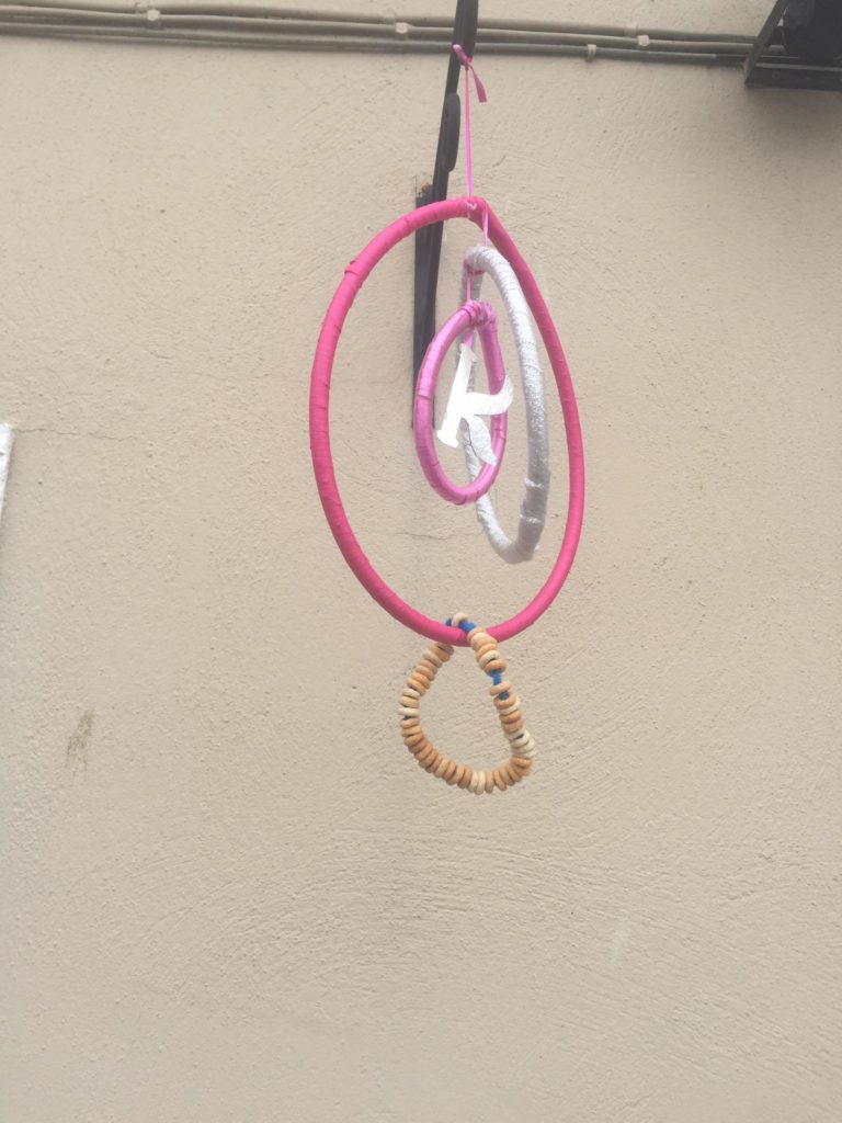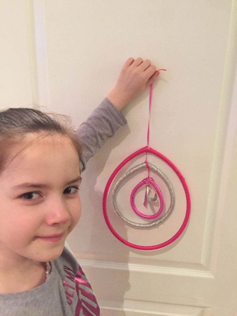 Katie was lucky to receive a ReCreate toolkit to help her creative projects. She’s put the materials to great use with some tapestry along with a lovely Spring Mobile with a little bird feeder attached to the end.