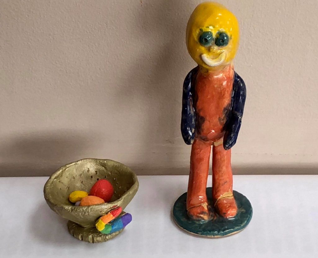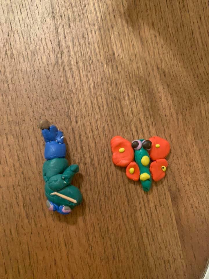 Chloe & Ryan have been super creative, getting involved in come clay work along with dressing up items from home. They’ve also spent time decorating items for their back garden, and we are very jealous! They look great!!