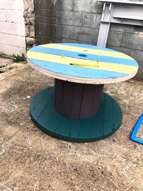 Grace and her family have been upcycling this cool cable reel just in time for the nice weather! The reel will come in handy for the summer barbecues!
