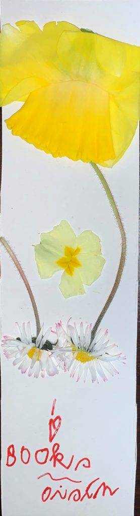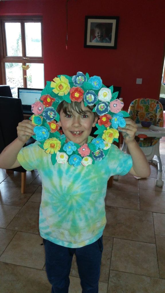 Oisín (6) has been very creative by including reused materials and nature. He has made a bookmark out of recycled card and pressed flowers. Well done Oisín.