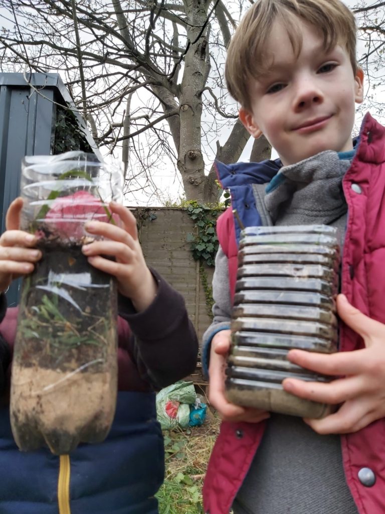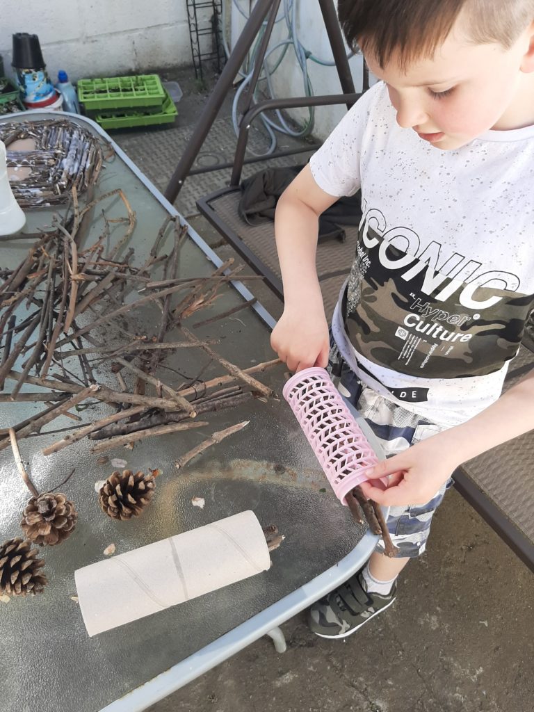 Archie and his little brother James have been very creative in setting up some accommodation for their back garden lodgers. They’ve created 2 lovely Worm Hotels for their Stoneybatter neighbors! They have also been very smart in setting up an Isolation Periscope, to ensure that they can remain safe while watching TV!