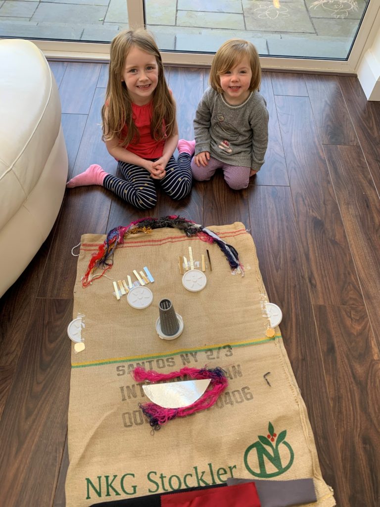 Avril (5) and Saorlaith (2) were also delighted to recently receeve a delivery of a ReCreate Toolkit. With their materials, they created a girl called Ciara to play with during their isolation.