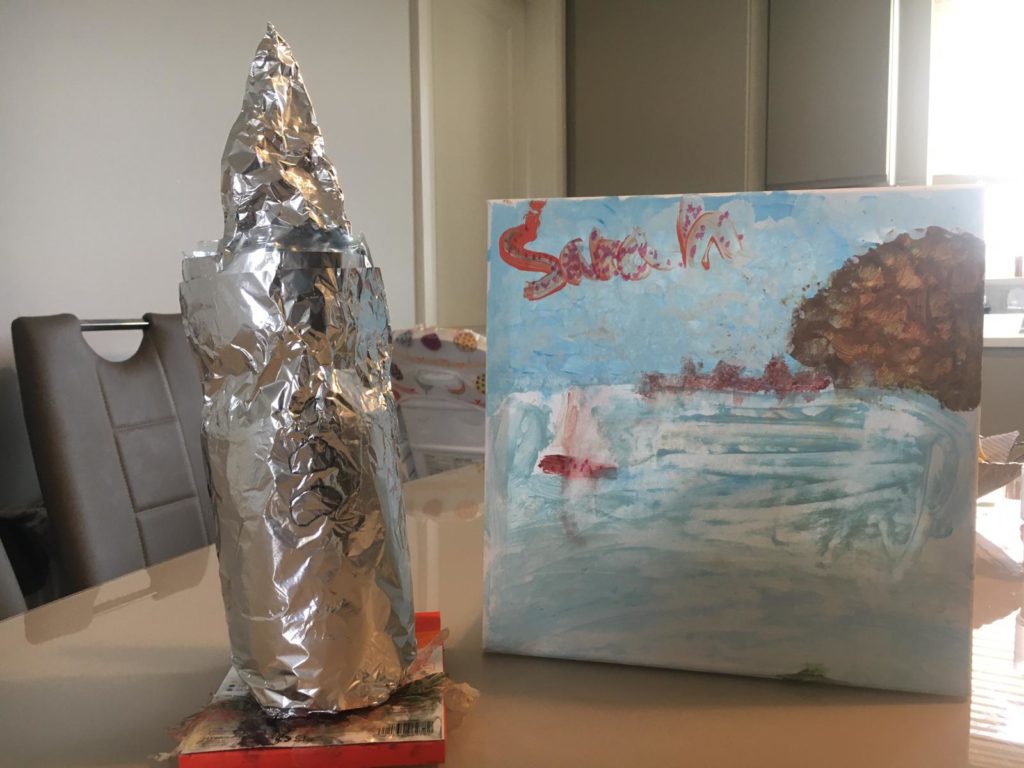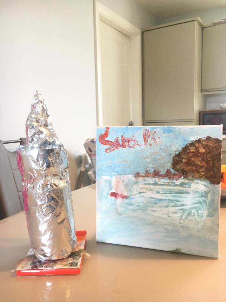 Sarah (6) has been having fun at home by using materials at home for making Rocket ship and also painting!