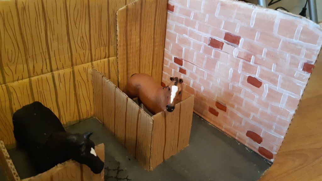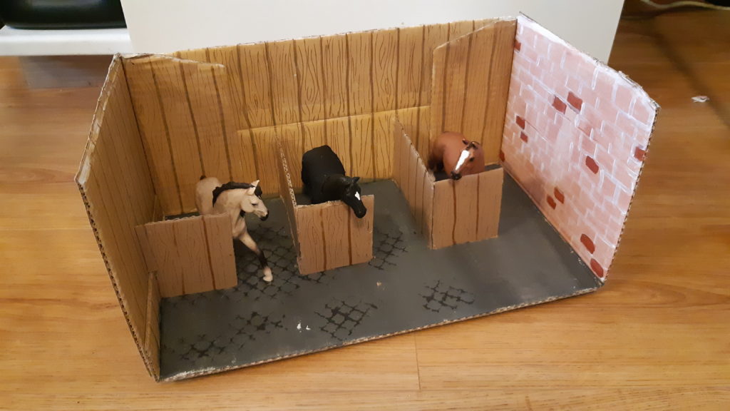 Sylwia and her children created a really lovely horse stable using an old cardboard box. The horses look really happy with their new home.