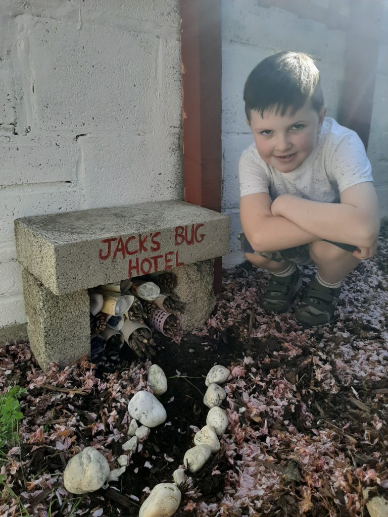 Jack has kept his creative streak going with another brilliant entry to our exhibition. This time he has shown us some images of his really cool Bug Hotel which looks like some 5 star accommodation for his insect friends! P.s We love the haircut Jack!