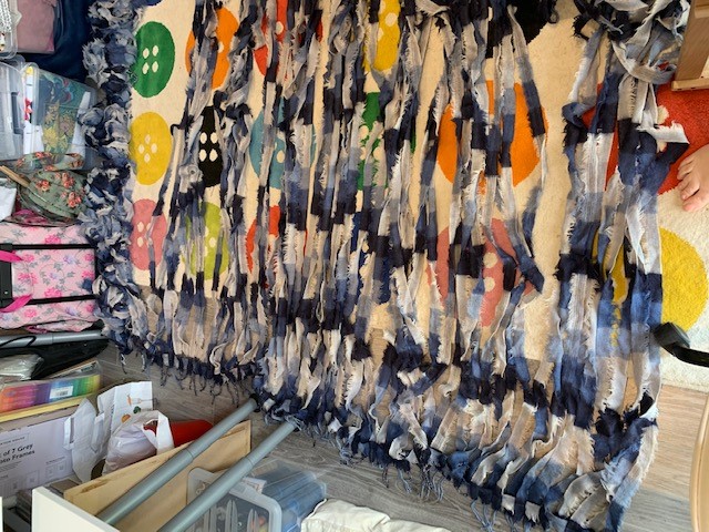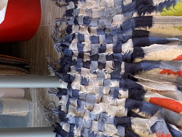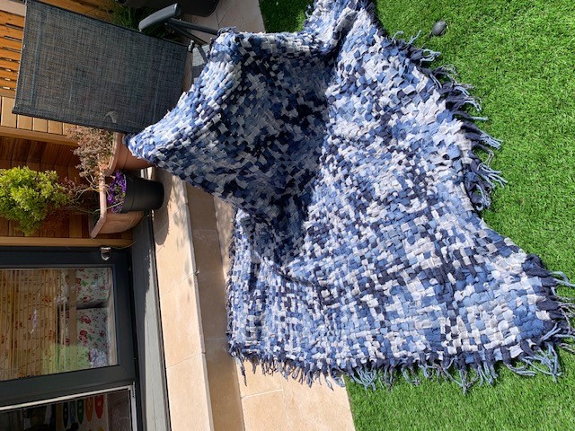 ReCreate Member Louise sent us in these lovely pictures of one of her at home projects. Louise used some of our offcuts from Avoca woolen mills to weave together and create this lovely rug!